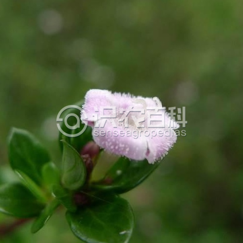 高60-90厘米,有臭氣。葉革質(zhì),卵形至倒披針形,長6-22毫米,寬3-6毫米,頂端短尖至長尖,邊全緣,無毛;葉柄短。花單生或數(shù)朵叢生于小枝頂部或腋生,有被毛、邊緣淺波狀的苞片;萼檐裂片細小,錐形,被毛;花冠淡紅色或白色,長6-12毫米,裂片擴展,頂端3裂;雄蕊突出冠管喉部外;花柱長突出,柱頭2,直,略分開。花期5-7月。