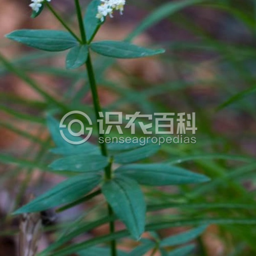 高20-65厘米;莖有4棱角,無(wú)毛或有極短的毛。葉紙質(zhì)或薄革質(zhì),4片輪生,狹披針形或線狀披針形,長(zhǎng)1-3厘米,寬1-4毫米,頂端鈍或稍尖,基部楔形或近圓形,邊緣常稍反卷,兩面無(wú)毛,邊緣有微毛;基出脈3條,在下面常凸起,在上面常凹陷;無(wú)柄或具極短的柄。聚傘花序頂生和生于上部葉腋,常在枝頂結(jié)成圓錐花序式,密花;花小;花梗長(zhǎng)0.5-1.5毫米;花萼被毛;花冠白色或淡黃色,直徑3-4毫米,輻狀,花冠裂片卵狀披針形,長(zhǎng)1.5-2毫米;花絲長(zhǎng)約1.4毫米,花柱2裂至近基部。果小,直徑1-2毫米,果爿單生或雙生,密被白色稍彎的糙硬毛;果柄長(zhǎng)1.5-3.5毫米。花期5-8月,果期6-10月。