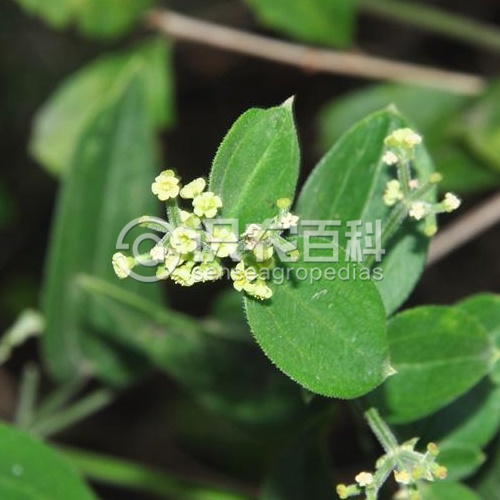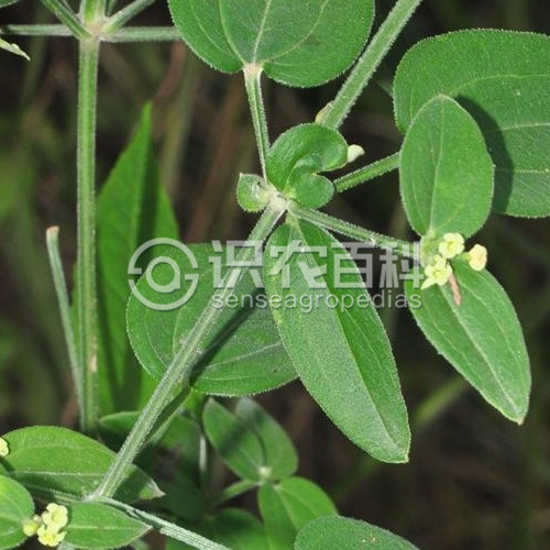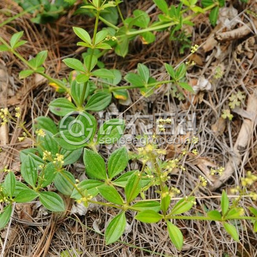 幼時常匍匐,高0.1-1米,有紫紅色的根;莖和分枝稍粗壯,有4角棱,有疏或密的硬毛或長柔毛,常在莖下部或棱角上較密。葉常厚,紙質或革質,4片輪生,卵形至卵狀披針形、橢圓形或披針形,長0.6-3厘米,寬0.3-2厘米,頂端稍鈍或短尖,基部鈍圓或短尖,邊緣常反卷,上面粗糙,下面常有淡黃色、圓形腺點,兩面均疏或密被短硬毛或長柔毛,3脈,稀5脈,近無柄或有短柄。聚傘花序頂生和腋生,多花,常成圓錐花序式排列,常3歧分枝,分枝常疏散而柔弱;總花梗被疏毛,稀近無毛,長2-10厘米;花小,單性,稀兩性;花梗長0.5-2.5毫米;花冠白色或淡黃色,輻狀,直徑2-2.5毫米,花冠裂片卵狀三角形,長1.2毫米,寬1毫米;雄蕊4,與花冠裂片互生,花絲長0.5-0.8毫米;花柱長約0.7毫米,頂端2裂。果小,直徑1-2毫米,果爿單生或雙生,密被鉤狀長毛,稀無毛。花期4-8月,果期5-12月。