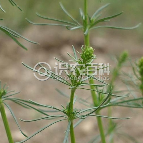基部稍木質(zhì),高25-45厘米;莖有4角棱,被短柔毛或秕糠狀毛。葉紙質(zhì),6-10片輪生,線形,通常長(zhǎng)1.5-3厘米,寬1-1.5毫米,頂端短尖,邊緣極反卷,常卷成管狀,上面無(wú)毛,稍有光澤,下面有短柔毛,稍蒼白,干時(shí)常變黑色,1脈,無(wú)柄。聚傘花序頂生和腋生,較大,多花,通常在枝頂結(jié)成帶葉的長(zhǎng)可達(dá)15厘米、寬可達(dá)12厘米的圓錐花序狀;總花梗密被短柔毛;花小,稠密;花梗有疏短柔毛或無(wú)毛,長(zhǎng)1-2.5毫米;萼管無(wú)毛;花冠黃色,輻狀,無(wú)毛,直徑約3毫米,花冠裂片卵形或長(zhǎng)圓形,頂端稍鈍,長(zhǎng)約1.5毫米;花藥黃色,花絲長(zhǎng)約0.6毫米;花柱長(zhǎng)約0.7毫米,頂部2裂。果小,果爿雙生,近球狀,直徑約2毫米,無(wú)毛。花期4-8月,果期5-10月。