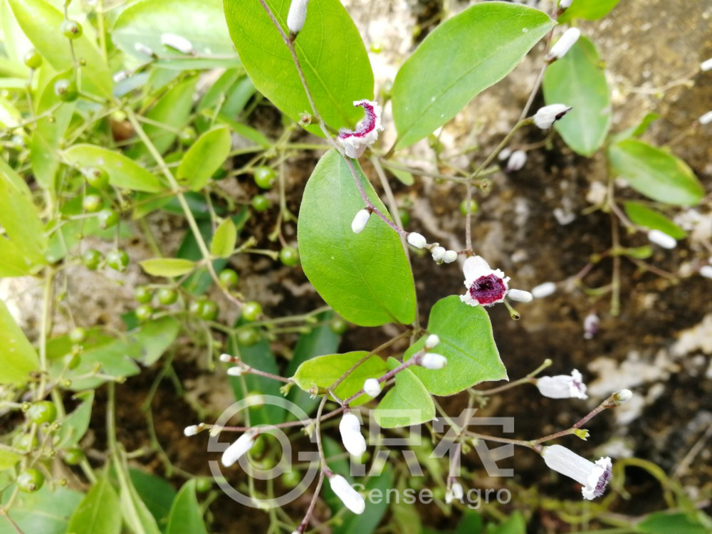 雞矢藤(學名:Paederia foetida L.),雙子葉植物綱,茜草目,茜草科,雞矢藤屬藤本。