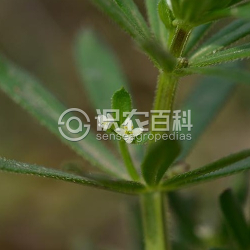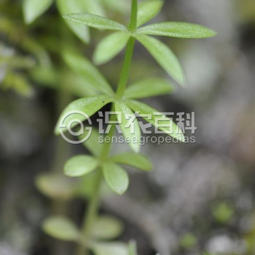 高5-80厘米,莖具4角棱,棱上有倒生的刺,少分枝。葉堅紙質,6-8片輪生,帶狀倒披針形,長1-3.2厘米,寬2-6毫米,頂端銳尖,基部漸狹,常萎軟狀,干時常卷縮,兩面無毛,在下面中脈和邊緣均有倒生的小刺,1脈,在下面凸起,無柄。聚傘花序腋生,總花梗長或短于葉,稍粗壯,有倒生的小刺,通常具3-5花,常向下彎;花小,4數;花梗長3-7毫米,在花后較粗壯,具倒生的小刺,弓形下彎;花冠白色,輻狀,直徑1-1.5毫米,花冠裂片卵形;雄蕊伸出,花絲短;花柱2,柱頭頭狀。分果爿近球形,單生或雙生,直徑2-2.5毫米,有小瘤狀凸起,果柄較粗壯,弓形下彎?;ㄆ?-6月,果期5月至翌年3月。