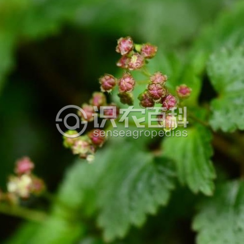 多年生小草本。莖直立,自基部分枝,下部多少匍匐,高10-25(-45)厘米,常半透明,黃綠色,有時上部帶紫色,被向上傾斜的微硬毛。葉三角狀卵形或近扇形,長1. 5-3(-4)厘米,寬1. 3-2.7 (-4)厘米,先端鈍圓,基部寬楔形、圓形或近截形,邊緣每邊具4-7枚圓齒或粗牙齒,莖下部的葉較小,扇形或三角形,基部截形或淺心形,上面翠綠色,疏生緊貼的小刺毛,下面淺綠色,有時帶紫色,疏生短柔毛,鐘乳體短桿狀,兩面均明顯,基出脈3-5條,次級脈與細脈呈二叉狀分枝;莖下部的葉柄較長;托葉膜質,寬卵形,長約1-1.5毫米,具緣毛。雄花序為多回二歧聚傘花序,生于枝的頂部葉腋,直徑1.5-4厘米,疏松,具長梗,長過葉,花序梗被向上傾斜的毛;雌花序密集成團傘花序,直徑3-6毫米,具短梗。雄花具梗,紫紅色,直徑2-3毫米;花被5深裂,裂片卵形,長約1.5毫米,背面近中部有橫向的雞冠狀突起物,其上緣生長毛;雄蕊5枚;退化雌蕊寬倒卵形,長約0.5毫米。雌花長約1毫米,花被綠色,不等4深裂,外面一對生于雌蕊的背腹面,較大,倒卵狀船形,稍長于子房,具龍骨狀突起,先端有1-2根透明長刺毛,背面和邊緣疏生短毛;內面一對裂片,生于雌蕊的兩側,長倒卵形,較窄小,頂生一根透明長刺毛。瘦果卵形,黃褐色,長約1毫米,有疣點狀突起?;ㄆ?-5月,果期6-7月。