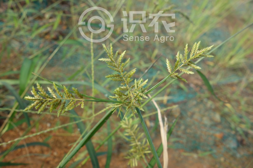 具芒碎米莎(學名:Cyperus microiria Steud.),單子葉植物綱,莎草目,莎草科,莎草屬一年生草本植物。