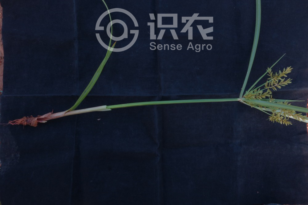 稈叢生,高20-50厘米,稍細,銳三稜形,平滑,基部具葉。葉短于稈,寬2.5-5毫米,平張;葉鞘紅棕色,表面稍帶白色。葉狀苞片3-4枚,長于花序;長側枝聚傘花序復出或多次復出,稍密或疏展,具5-7個輻射枝,輻射長短不等,最長達13厘米;穗狀花序卵形或寬卵形或近于三角形,長2-4厘米,寬1-3厘米,具多數小穗;小穗排列稍稀,斜展,線形或線狀披針形,長6-15毫米,寬約1.5毫米,具8-24朵花;小穗軸直,具白色透明的狹邊;鱗片排列疏松,膜質,寬倒卵形,頂端圓,長約1.5毫米,麥稈黃色或白色,背面具龍骨狀突起,脈3-5條,綠色,中脈延伸出頂端呈短尖;雄蕊3,花藥長圓形;花柱極短,柱頭3。小堅果倒卵形,三稜形,幾與鱗片等長,深褐色,具密的微突起細點?;ü?-10月。