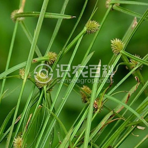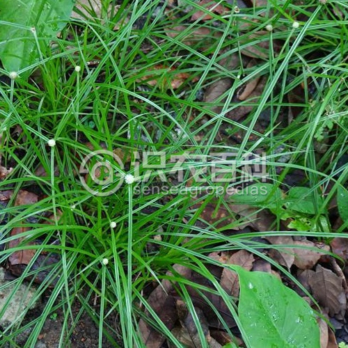 多年生草本,具匍匐根狀莖。稈散生或疏叢生,細弱,扁銳三稜形,基部不膨大。葉通常短于稈,寬2.5-4.5毫米,平張,柔弱,邊緣具疏鋸齒;葉鞘短,褐色,或具紫褐色斑點,最下面的葉鞘無葉片。苞片3-4枚,葉狀,斜展,較花序長很多;穗狀花序1個,少2-3個,圓卵形或球形,長5-9毫米,寬5-7毫米,具極多數小穗;小穗近于倒卵形或披針狀長圓形,頂端漸尖,壓扁,長2.5-3毫米,具1朵花;鱗片膜質,舟狀,長同于小穗,蒼白色或麥稈黃色,具銹色斑點,兩側各具3-4條脈,背面龍骨狀突起具翅,翅的下部狹,從中部至頂端較寬,且延伸出鱗片頂端呈稍外彎的短尖,翅邊緣具緣毛狀細刺;雄蕊3;花柱長,柱頭2。小堅果長圓形或倒卵狀長圓形,較扁,長約為鱗片的1/2,棕色,具密的細點,頂端具很短的短尖?;ü?-8月。