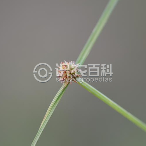 根狀莖長而匍匐,外被膜質、褐色的鱗片,具多數節間,節間長約1.5厘米,每一節上長一稈。稈成列地散生,細弱,高7-20厘米,扁三稜形,平滑,基部不膨大,具4-5個圓筒狀葉鞘,最下面2個葉鞘常為干膜質,棕色,鞘口斜截形,頂端漸尖,上面2-3個葉鞘頂端具葉片。葉柔弱,短于或稍長于稈,寬2-4毫米,平張,上部邊緣和背面中肋上具細刺。葉狀苞片3枚,極展開,后期常向下反折;穗狀花序單個,極少2或3個,球形或卵球形,長5-11毫米,寬4.5-10毫米,具極多數密生的小穗。小穗長圓狀披針形或披針形,壓扁,長約3毫米,寬0.8-1毫米,具1朵花;鱗片膜質,長2.8-3毫米,下面鱗片短于上面的鱗片,白色,具銹斑,少為麥稈黃色,背面的龍骨狀突起綠色,具刺,頂端延伸成外彎的短尖,脈5-7條;雄蕊3-1個,花藥線形;花柱細長,柱頭2,長不及花柱的1/2。小堅果倒卵狀長圓形,扁雙凸狀,長約為鱗片的1/2,表面具密的細點?;ü?-9月。