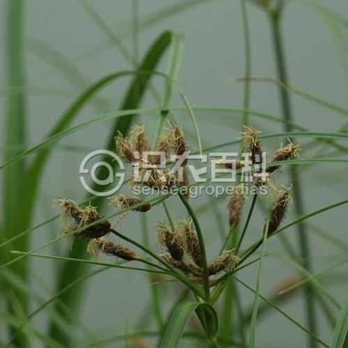 根狀莖粗而長,呈匍匐狀,頂端生球狀塊莖,常從塊莖又生匍匐根狀莖。稈高大粗壯,高70-150厘米,銳三稜形,平滑,基部膨大,具稈生葉。葉扁平,線形,寬5-10毫米,稍堅挺,上部葉片邊緣粗糙,葉鞘很長,最長可達20厘米。葉狀苞片3-4枚,通常長于花序;長側枝聚繖花序簡單,具3-8個輻射枝,輻射枝最長達7厘米;每輻射枝具1-3(-4)小穗;小穗卵形或長圓形,繡褐色,長1-2厘米,寬5-8(10)毫米,具多數(shù)花;鱗片密復瓦狀排列,膜盾,長圓形,長約7毫米,外面被短柔毛,面具一條中肋,頂端具芒,芒長2-3毫米;下位剛毛6條,幾與小堅果等長,上有倒刺;雄蕊3,花藥線形,長約4毫米;花柱細長,柱頭3。小堅果倒卵形,三稜形,黃白色。花期5-7月。