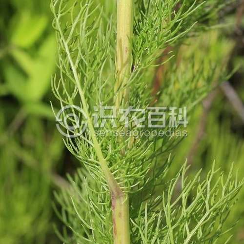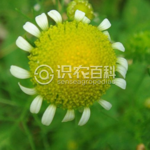 一或二年生草本。莖直立,高10-35厘米,不分枝或自基部分枝,有條紋,無毛。基部葉花期枯萎;莖下部和中部葉倒披針狀矩圓形或矩圓形,長5.5-9.5厘米,寬2.5-3厘米,三回羽狀全裂,基部抱莖,裂片狹條形,寬0.5毫米,兩面無毛,上部葉漸小。頭狀花序異型,少數或多數單生于莖枝頂端,直徑1-1.5厘米,花序梗頂端膨大且常疏生柔毛;總苞半球形;總苞片2-3層,近等長,外層寬披針形,內層矩圓形,頂端圓形,淡綠色或蒼白色,光滑,有寬而亮的白色或稍帶褐色的膜質邊緣;花托卵狀圓錐形。舌狀花舌片白色,短而寬,長4(6)毫米,寬1.5