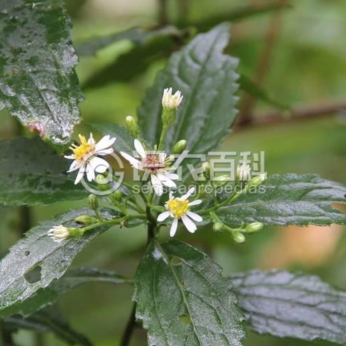 多年生草本,根狀莖粗壯。莖直立,高40-100厘米,細或粗壯,有棱及溝,被柔毛或粗毛,上部有時屈折,有上升或開展的分枝。下部葉在花期枯落,葉片寬卵圓形,急狹成長柄;中部葉橢圓形或長圓狀披針形,長5-15厘米,寬1-5厘米,中部以上急狹成楔形具寬翅的柄,頂端漸尖,邊緣有3-7對淺或深鋸齒;上部葉漸小,有淺齒或全緣,全部葉紙質(zhì),上面被短糙毛,下面淺色被短柔毛常有腺點,或兩面被短茸毛而下面沿脈有粗毛,有離基(有時長達7厘米)三出脈,側(cè)脈3-4對,網(wǎng)脈常顯明。頭狀花序徑1.5-2厘米,排列成傘房或圓錐傘房狀,花序梗長0.5-3厘米。總苞倒錐狀或半球狀,徑4-10毫米,長3-7毫米;總苞片3層,覆瓦狀排列,線狀長圓形,下部近革質(zhì)或干膜質(zhì),上部綠色或紫褐色,外層長達2毫米,內(nèi)層長約4毫米,有短緣毛。舌狀花約十余個,管部長2毫米,舌片線狀長圓形,長達11毫米,寬2毫米,紫色,淺紅色或白色,管狀花黃色,長4.5-5.5毫米,管部長1.5毫米,裂片長1-2毫米;花柱附片長達1毫米。冠毛淺紅褐色或污白色,長3-4毫米。瘦果倒卵狀長圓形,灰褐色,長2-2.5毫米,有邊肋,一面常有肋,被短粗毛。花果期7-12月。