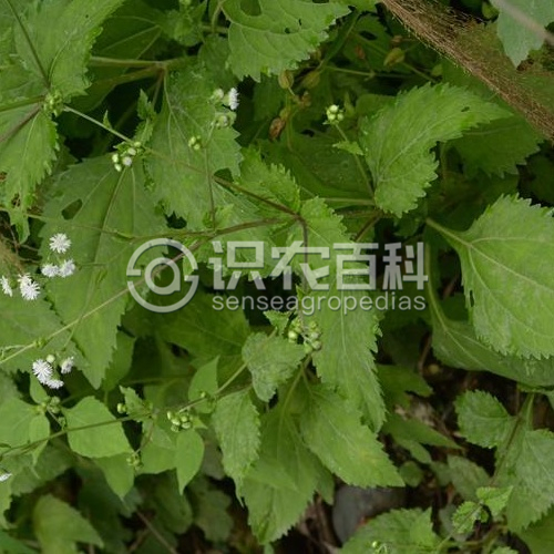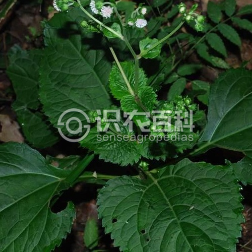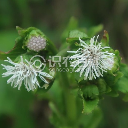 一年生草本,高30-100厘米。莖直立,單生,基部直徑0.5-1厘米,堅硬,通常自上部叉狀分枝,被白色短柔毛,下部或中部以下光滑無毛,全株有稀疏的葉。基部的葉花期生存或凋萎;中部的莖葉較大,長橢圓狀披針形,長4-12厘米,寬2-5厘米,頂端急尖或鈍,基部寬或狹楔形,葉柄有狹翼,長0.5-4厘米,邊緣有圓鋸齒,葉兩面有稀疏的短柔毛或脫毛,通常沿脈有較密的毛;上部和下部的葉漸小,有短葉柄。頭狀花序小,少數稀多數在假軸分枝頂端排列成松散傘房狀或傘房圓錐狀花序。花序分枝粗壯;花序梗長0.8-3厘米,被灰白色或銹色短柔毛。總苞半球形,長4-5毫米,寬6-8毫米,果期變寬,寬可達10毫米。總苞片2層,近等長,狹長橢圓形,質地薄,幾膜質,綠色,頂端鈍,外層苞片大部合生,外面被白色稀疏長柔毛,基部的毛較密。花冠長約2.5毫米,下部被粘質腺毛,上部擴大,有5齒,被柔毛。瘦果倒披針形,長約4毫米,寬約1毫米,頂端鈍,基部收窄,被腺點,熟時黑褐色。冠毛約4枚,長約1毫米,棒狀,基部結合成環狀,頂端有棕黃色的粘質的腺體分泌物。花果期:8-10月。