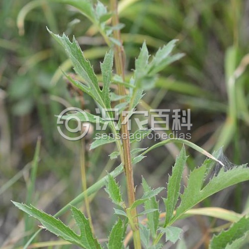 多年生草本,高70-150厘米。根狀莖粗厚,橫走。莖直立,上部有傘房狀花序分枝,極少不分枝,全部莖枝無毛?;~與下部莖葉全形長圓形或長橢圓形,長達40厘米,寬達12厘米,羽狀全裂,有長5-16厘米;側裂片S對,全部裂片長橢圓形,寬1.5-3厘米;中上部莖葉與基生葉及下部莖葉同形并等樣分裂,但無柄,裂片倒披針形、披針形或橢圓形,接頭狀花序下部的葉有時大頭羽狀全裂,側裂片1-2對。全部葉裂片邊緣有鋸齒或大鋸齒,兩面綠色,有短糙毛或脫毛。頭狀花序異型,少數在莖枝頂端排成傘房花序,少有植株僅含有1個頭狀花序而單生莖頂的??偘霠罨蜱姞?,直徑1.5-3厘米,無毛,上部無收溢??偘s7層,覆瓦狀排列,向內層漸長,外層三角形或卵形,長1-7毫米,寬1.5-4毫米,頂端急尖;中層及內層橢圓形、長橢圓形至披針形,長1-1.8厘米,寬3-4毫米,頂端漸尖或急尖;最內層線形,長2厘米,寬1毫米。全部苞片外面紫紅色。邊花雌性,雄蕊發育不全,中央盤花兩性,有發育的雌蕊和雄蕊,全部小花紫色,雌花花冠長2.6厘米,細管部長1.2厘米,檐部長1.4厘米,花冠裂片線形,長5毫米;兩性小花花冠長2厘米,檐部與細管部等長,花冠裂片披針形或線狀披針形,長5毫米。瘦果倒披針狀長橢圓形,長7毫米,寬2毫米,有多數高起的細條紋。冠毛黃褐色,長達1.2厘米;冠毛剛毛糙毛狀,分散脫落?;ü?-10月。