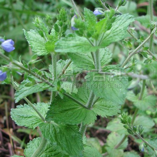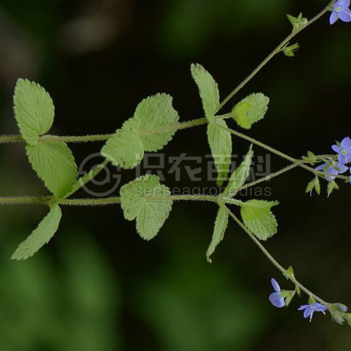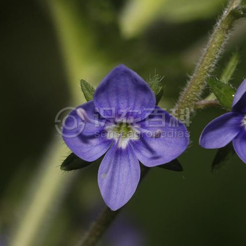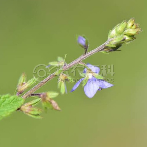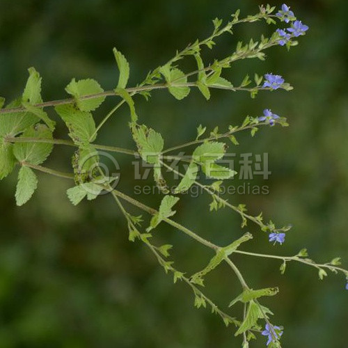 (15)50-80厘米,全體被白色多細胞柔毛。莖直立或上升,不分枝。葉無柄或具極短的葉柄,葉片卵形或卵狀三角形,長2-5厘米,寬1-3厘米,邊緣具深刻的粗鋸齒,多為重鋸齒。總狀花序單支或成對,側生于莖中上部葉腋,長而花疏離,果期長達20厘米;苞片寬條形或倒披針形,長約5毫米;花梗比苞片短得多;花萼裂片條狀長橢圓形,花期長4毫米,果期長5-6毫米;花冠輻狀,紫色或藍色,直徑6-10毫米,裂片圓形至菱狀卵形;雄蕊與花冠近等長。蒴果倒心形,長4-5毫米,寬5-6毫米,基部楔狀渾圓,有多細胞睫毛,花柱長3-4毫米。種子南瓜子形,長略過1毫米。花期6月。