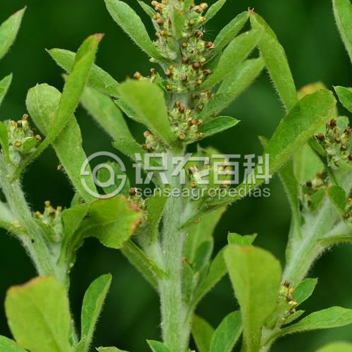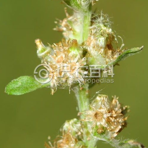 下部葉無(wú)柄,倒披針形或匙形,長(zhǎng)6-10厘米,寬1-2厘米,基部長(zhǎng)漸狹,下延,頂端鈍、圓,或有時(shí)中脈延伸呈刺尖狀,全緣或微波狀,上面被疏毛,下面密被灰白色棉毛,側(cè)脈2-3對(duì),細(xì)弱,有時(shí)不明顯;中部葉倒卵狀長(zhǎng)圓形或匙狀長(zhǎng)圓形,長(zhǎng)2.5-3.5厘米,葉片于中上部向下漸狹而長(zhǎng)下延,頂端鈍、圓或中脈延伸呈刺尖狀;上部葉小,與中部葉同形。頭狀花序多數(shù),長(zhǎng)3-4毫米,寬約3毫米,數(shù)個(gè)成束簇生,再排列成頂生或腋生、緊密的穗狀花序;總苞卵形,徑約3毫米;總苞片2層,污黃色或麥稈黃色,膜質(zhì),外層卵狀長(zhǎng)圓形,長(zhǎng)約3毫米,頂端鈍或略尖,背面被綿毛;內(nèi)層與外層近等長(zhǎng),稍狹,線(xiàn)形,頂端鈍、圓、背面疏被綿毛;花托干時(shí)除四周邊緣外幾完全凹入,無(wú)毛。雌花多數(shù),花冠絲狀,長(zhǎng)約3毫米,頂端3齒裂,花柱分枝較兩性花的長(zhǎng)。兩性花少數(shù),花冠管狀,向上漸擴(kuò)大,檐部5淺裂,裂片三角形或有時(shí)頂端近渾圓,無(wú)毛。瘦果長(zhǎng)圓形,長(zhǎng)約0.5毫米,有乳頭狀突起。冠毛絹毛狀,污白色,易脫落,長(zhǎng)約2.5毫米,基部連合成環(huán)。花期12月至翌年5月。