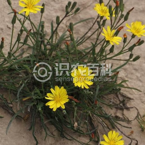 (10-26枚),多數或少數在莖枝頂端排成傘房狀花序。總苞花期圓柱狀或鐘狀,果期有時卵球形;總苞片2-3層,外層最短,內層最長。花托平,無托毛。舌狀小花黃色,舌片頂端5齒裂。花柱分枝細,花藥基部附屬物箭頭形。瘦果壓扁,褐色,紡錘形或橢圓形,無毛,有10條尖翅肋,頂端漸尖成細喙,喙長或短,細絲狀,異色。冠毛白色,2層,纖細,不等長,微粗糙,宿存或脫落。