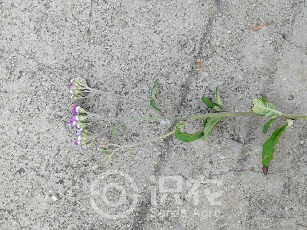 高20-100厘米。根垂直,多少木質,分枝,具纖維狀根。莖直立,通常上部分枝,或稀自基部分枝而呈鋪散狀,具條紋,被灰色貼生短柔毛,具腺。下部和中部葉具柄,菱狀卵形,菱狀長圓形或卵形,長3-6.5厘米,寬1.5-3厘米,頂端尖或稍鈍,基部楔狀狹成具翅的柄,邊緣有具小尖的疏鋸齒,或波狀,側脈3-4對,上面綠色,被疏短毛,下面特別沿脈被灰白色或淡黃色短柔毛,兩面均有腺點;葉柄長10-20毫米;上部葉漸尖,狹長圓狀披針形或線形,具短柄或近無柄。頭狀花序多數,或稀少數,徑6-8毫米,具19-23個花,在莖枝端排列成傘房狀圓錐花序;花序梗細長5-15毫米,具線形小苞片或無苞片,被密短柔毛;總苞鐘狀,長4-5毫米,寬6-8毫米;總苞片4層,綠色或有時變紫色,背面被短柔毛和腺,外層線形,長1.5-2毫米,頂端漸尖,中層線形,內層線狀披針形,頂端刺狀尖,具1條脈或有時上部具多少明顯3脈;花托平,具邊緣具細齒的窩孔;花淡紅紫色,花冠管狀,長5-6毫米被疏短微毛,具腺,上部稍擴大,裂片線狀披針形,頂端外面被短微毛及腺,瘦果圓柱形,長約2毫米,頂端截形,基部縮小,被密短毛和腺點;冠毛白色,2層,外層多數而短,內層近等長,糙毛狀,長4-5毫米。花期全年。