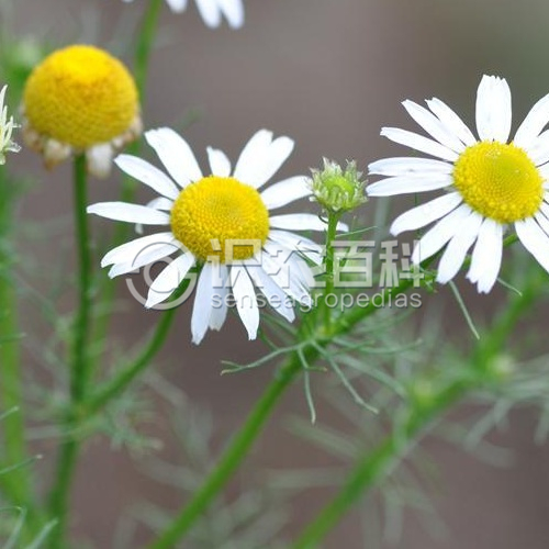 一或二年生草本。莖直立或上升,高30-70厘米,圓柱形,中空,有細溝紋,無毛,上半部多分枝。葉卵狀矩圓形或矩圓形,長2-4厘米,寬1-2.5厘米,羽狀全裂,末次裂片狹條形,頂端短尖頭,兩面無毛,無葉柄,基部稍擴大。頭狀花序數個或多數生于莖枝頂端,直徑2-3厘米,花序梗長,頂端膨大;總苞半球形,直徑7-10毫米;總苞片3-4層,外層披針形,蒼白綠色,無明顯的膜質邊緣,中內層矩圓形至倒披針形,邊緣狹膜質,白色或淡綠色;花托半球形或寬圓錐形。舌狀花舌片白色,平展,長約10毫米,寬約3.5毫米;管狀花黃色,花冠長1.8毫米,上半部擴大,冠檐5裂,裂片頂端有紅色樹脂狀腺點。瘦果長2毫米,褐色,多皺紋,有3條蒼白色的肋,背面頂端有2個紅色圓形腺體。冠狀冠毛短,堅硬近全緣。花果期9月。