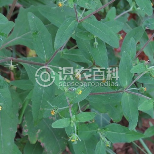 一年生草本。莖直立,較細弱,高30-80厘米,通常上部分枝,被平伏短柔毛,有時上部毛較密。基部葉花期枯萎;中部葉卵圓形、三角狀卵圓形或卵狀披針形,長2.5-11厘米,寬1.5-7厘米,基部寬楔形或鈍圓形,有時下延成具翼的長0.5-6厘米的柄,頂端漸尖,邊緣有規則的齒;上部葉漸小,卵狀披針形,長1厘米,寬0.5厘米,邊緣有疏齒或全緣,有短柄或無柄;全部葉兩面被柔毛,基出三脈,葉脈在葉下面稍突起。頭狀花序徑10-18毫米,多數頭狀花序在枝端排列成疏散的圓錐花序;花梗纖細,疏生平伏短柔毛。總苞鐘狀;總苞片2層,葉質,背面密被紫褐色頭狀有柄的腺毛;外層苞片5枚,線狀匙形,長6-9毫米,內層苞片倒卵狀長圓形,長3毫米。托片倒卵狀長圓形,背面疏被頭狀具柄腺毛。雌花花冠的管部長約0.8毫米,兩性花花冠上部鐘狀,頂端4-5齒裂。瘦果倒卵形,4棱,長約2.5毫米,有灰褐色環狀突起。 花期4-9月,果期6-11月。