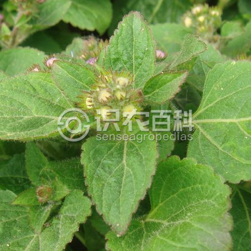 一年生草本,高30-70厘米或有時達1米。無明顯主根。莖直立,不分枝,或自中上部或自下部分枝而分枝斜升,或下部莖枝平臥而節生不定根。莖基部徑達6毫米。全部莖枝淡紅色或綠色或麥稈黃色,被白色絨毛或薄棉毛,莖枝上部及腋生小枝上的毛常稠密,開展。葉對生,有時上部的葉近互生,寬或長卵形,或三角狀卵形,中部莖葉長2-6厘米,寬1.5-3.5厘米,或長寬相等。自中部向上及向下和腋生的葉漸小或小。全部葉有葉柄,柄長0.7-3厘米,邊緣有規則的圓鋸齒,齒大或小,或密或稀,頂端圓形或急尖,基部心形或平截,三出基脈或不明顯五出脈,兩面被稀疏或稠密的白色柔毛,下面及脈上的毛較密,上部葉的葉柄、腋生幼枝及幼枝葉的葉柄通常被開展的白色長絨毛。頭狀花序5-15或更多在莖枝頂端排成直徑2-4厘米的傘房或復傘房花序;花序梗被密柔毛或塵狀柔毛。總苞鐘狀,徑6-7毫米;總苞片2層,狹披針形,長4-5毫米,全緣,頂端長漸尖,外面被較多的腺質柔毛?;ü陂L2.5-3.5毫米,檐部淡紫色,5裂,裂片外面被柔毛。瘦果黑色,有5縱棱,長1.5-1.7毫米。冠毛膜片狀,5個,分離,膜片長圓形或披針形,全長2-3毫米,頂端芒狀長漸尖,有時冠毛膜片頂端截形,而無芒狀漸尖,長僅0.1-0.15毫米?;ü谌?。