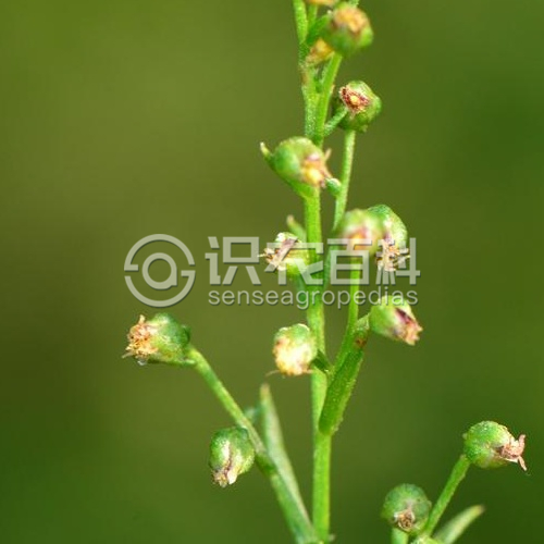 多年生草本,高50-150cm。根狀莖粗壯,常有若干條營養枝。莖直立,常叢生,上部有開展和直立的分枝,被微柔毛或近無毛。下部葉倒卵形或寬匙形,花期萎謝,長3-8cm,寬1-2.5cm,下部漸狹,有條形假托葉,上部有齒或淺裂;中部葉匙形,長2.5-4.5cm,寬0.5-2cm,上端有3-5枚淺裂片或深裂片,每裂片上端有2-3枚小鋸齒或無,近無毛或被微柔毛;上部葉近條形,三裂或不裂;苞片葉長橢圓形、披針形,先端不裂或偶有淺裂。頭狀花序多數,卵球形或近球形,于分枝端排成復總狀,有短梗及條形苞葉;總苞球形或長圓形,直徑1-2mm,無毛;總苞片3-4層,背面多少葉質,邊緣寬膜質;雌花3-8朵,能孕;內層為兩性花5-10條,不孕育。瘦果小,倒卵形,無毛?;?、果期7-10月。