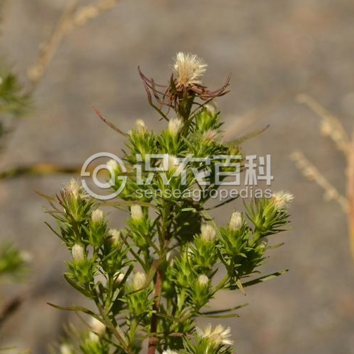 高20-60厘米。 莖直立,自基部分枝,少有不分枝,下部常紫紅色,無毛或近無毛,上部及分枝被疏短糙毛。 葉較密集,基部葉花期常凋落。葉無柄,線形或線狀披針形,長2-6厘米,寬3-6毫米,頂端尖或稍尖,基部半抱莖,全緣,上面被疏短毛或幾無毛,邊緣有糙緣毛,上部葉漸小而逐漸變成總苞片。 頭狀花序多數或較多數,在莖或枝端排成總狀圓錐花序,少有單生于枝頂端,徑1-2厘米,具短花序梗。總苞半球狀鐘形,總苞片2-3層,線形,不等長,短于花盤,頂端尖,外層綠色,草質,長7-8毫米,寬約1毫米,有時反折,頂端及邊緣有緣毛,內層下部邊緣膜質,上部草質。雌花多數,花冠細管狀,無色,連同花柱長約4毫米,上端斜切,或有長達1.2毫米的短舌片,上部及斜切口被微毛;兩性花花冠管狀,長4-4.5毫米,管部上端被微毛,無色或裂片淡粉色,花柱分枝披針形,花全部結實。瘦果長圓形,長2-2.2毫米,基部縮小,紅褐色,被密短軟毛;冠毛白色2層,外層剛毛狀,極短,內層糙毛狀,長6-7毫米。 花果期8-10月。