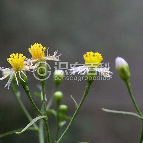 莖高30-50有時達80厘米,單生或數個叢生于根頸上,下部常帶紅色,無毛,上部有多少開展的分枝?;咳~在花期枯萎,下部葉條狀或矩圓狀披針形,長5-10厘米,寬0.5-1.2厘米,頂端尖,全緣或有具小尖頭的疏鋸齒;中部葉漸狹,無柄,上部葉漸小,苞葉狀;全部葉無毛,肉質。頭狀花序排成傘房狀,有長花序梗??偘軤?,花后鐘狀,徑約7毫米??偘?-3層,疏覆瓦狀排列,綠色,邊緣常紅色,干后膜質,無毛,外層披針形或卵圓形,頂端鈍,長2.5-3毫米,內層狹矩圓形,長約7毫米。舌狀花1層,管部長3.5-4毫米;舌片長10-12毫米,寬2毫米;管狀花長8-9毫米,管部長4-5毫米,裂片長1.5-2毫米。瘦果長約2.5-3毫米,扁,有邊肋,兩面各有1脈,被疏毛。冠毛在花期長5毫米,花后增長,達14-16毫米,有多層極細的微糙毛?;ü?-12月。