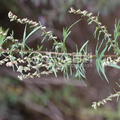 多年生草本。主根細長,側(cè)根多;根狀莖細,匍地或斜向上,直徑3-6毫米,具營養(yǎng) 枝。莖少數(shù)或單生,高75-180厘米,有細縱棱,基部通常紅色,上部褐色或紅色;中部以上分枝,枝長10-20(-30)厘米;莖、枝初時微被短柔毛,后脫落無毛。葉紙質(zhì),上面綠色無毛或近無毛,背面除中脈外密被灰白色蛛絲狀絨毛;營養(yǎng)枝葉與莖下部葉近圓形或?qū)捖研?,二回羽狀全裂或深裂,具短柄,花期葉凋謝;中部葉卵形、長卵形或?qū)捖研?,長7-13厘米,寬4-10厘米,(一至)二回羽狀分裂,第一回全裂,每側(cè)裂片3-4枚,裂片披針形、線狀披針形或線形,長2-4厘米,寬2-6(-10)毫米,再次羽狀深裂或全裂,每側(cè)具2-3枚小裂片或為淺裂齒,先端銳尖,邊緣稍反卷,葉柄長0.5-1厘米,基部常有小型假托葉;上部葉橢圓形,羽狀全裂,每側(cè)具裂片2-3枚,裂片線狀披針形或線形,先端銳尖,不再分裂或偶有小裂齒,無柄,基部有小型的假托葉;苞片葉小,3-5全裂或不分裂而為線形或線狀披針形。頭狀花序小,多數(shù),橢圓狀卵形或長卵形,直徑1 1.5(-2)毫米,無?;蛴袠O短的梗,具小苞葉,在分枝的上半部或分枝的小枝上排成密穗狀花序,并在莖上組成開展或中等開展的圓錐花序;總苞片3層,外層總苞片小,卵形,背面初時具蛛絲狀短柔毛,后漸稀疏,近無毛,邊狹膜質(zhì),中層總苞片長卵形,背面初時疏被蛛絲狀柔毛,后無毛,邊寬膜質(zhì),內(nèi)層總苞片長卵形或橢圓狀倒卵形,半膜質(zhì),背面無毛或近無毛;雌花9-10朵,花冠狹管狀,檐部具2裂齒,花柱長,伸出花冠外,先端2叉,叉端尖;兩性花12-14朵,花冠管狀或高腳杯狀,檐部外卷,紫紅色或黃色,花藥線形,先端附屬物尖,長三角形,基部鈍,花柱近與花冠等長,先端稍叉開,叉端截形,有睫毛。瘦果小,狹卵形,略扁?;ü冢?-10月。