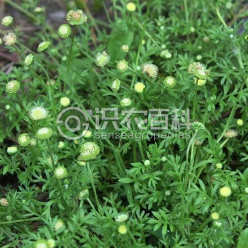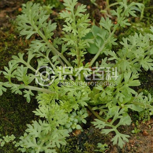 莖具多數(shù)鋪散的分枝,多少被淡褐色長柔毛。葉互生,二回羽狀分裂,兩面疏生長柔毛或幾無毛;基生葉倒披針狀長圓形,長3-5厘米,寬1-2厘米,有稍膜質(zhì)擴大的短柄,一回裂片約5對,下部的.漸小而直展;中部莖生葉長圓形或橢圓形,長1.5-2厘米,寬0.7-1厘米,基部半抱莖;全部葉末次裂片多為淺裂的三角狀短尖齒,或為半裂的三角狀披針形小裂片,頂端短尖頭。頭狀花序單生枝端,或葉腋或與葉成對生,直徑約5毫米,花序梗纖細,長5-12毫米,被長柔毛或近無毛;總苞盤狀;總苞片2層,矩圓形,綠色,具1紅色中脈,邊緣膜質(zhì),頂端鈍或短尖,內(nèi)層顯著短小。花托乳突果期伸.長成果梗。邊緣花雌性,多數(shù),無花冠;盤花兩性,少數(shù),花冠管狀,黃色,4裂。瘦果倒卵狀矩圓形,扁平,長1.2毫米,寬0.8毫米,邊緣有粗厚的寬翅,被腺點。花果期9月至翌年3月。