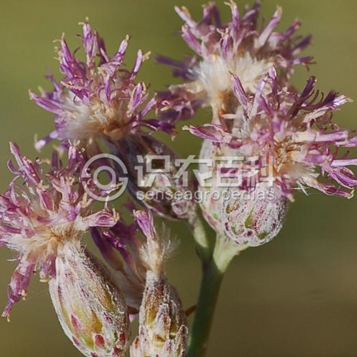 多年生草本,高50-100厘米,有時達(dá)150厘米。莖粗壯,直立,多分枝,基部徑8-10毫米,圓柱形,中空,幼枝有溝或多角形,被密糙毛或柔毛,老枝除 有疣狀突起外,幾無毛,節(jié)間長1-5厘米。葉卵圓形,長卵圓形,或長橢圓形,長1.5-6.5厘米,寬0.5-2.5厘米,頂端鈍或圓形,基部等寬或稍狹,有圓形或戟形的小耳,抱莖,全緣,有時具稀疏而不規(guī)則的短齒,質(zhì)厚,幾肉質(zhì),兩面被短糙毛,后有時無毛;中脈和側(cè)脈纖細(xì),在下面稍高起。頭狀花序長約13-15毫米,約3-7個生于枝端;花序梗長5-25毫米;苞葉漸小,卵圓形或披針形。總苞卵圓形或短圓柱形,長10-13毫米;總苞片約5層,外層卵圓形,頂端圓形,較內(nèi)層短3-4倍,內(nèi)層長披針形,頂端稍尖,厚紙質(zhì),外面被短氈狀毛,邊緣有較長的緣毛。小花黃色或紫紅色;雌花花冠絲狀,長7-9毫米;花柱分枝細(xì)長,頂端稍尖;兩性花花冠細(xì)管狀,長9-10毫米,上部約四分之一稍寬大,有卵形被短毛的裂片;花藥超出花冠;花柱分枝較短,頂端尖。冠毛白色,長7-9毫米;雌花冠毛有纖細(xì)的微糙毛;雄花冠毛頂端較粗厚,有細(xì)齒。瘦果長約1.5毫米,圓柱形,基部較狹窄,有4-5縱棱,無毛?;ㄆ?-9月;果期9-10月。