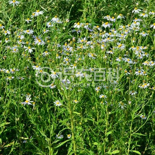 (4.5) 厘米,頂端漸尖,基部漸狹,無柄,邊緣疏生缺刻狀鋸齒或間有羽狀披針形尖裂片,上面無毛,邊緣粗糙或有向上彎的短剛毛,下面近光滑,脈在下面凸起;上部分枝上的葉小,條狀披針形,全緣。 頭狀花序直徑2.5-3.5厘米,單生枝端且排成傘房狀;總苞半球形,徑10-12毫米,總苞片3層,覆瓦狀排列,有微毛,外層較短,長橢圓狀披針形,長3-4毫米,急尖,內層長4-5毫米,頂端鈍尖,邊緣膜質。 舌狀花淡藍紫色,管部長約1.5毫米;舌片長1.5-1.8厘米,寬2-2.5毫米;管狀花黃色,長約3-4毫米,管部長1-1.3毫米。瘦果倒卵形,長3-3.5毫米,淡綠褐色,扁而有淺色邊肋或偶有3肋而果呈三棱形,被白色短毛。冠毛長0.5-1.2毫米,淡紅色。花果期7-9月