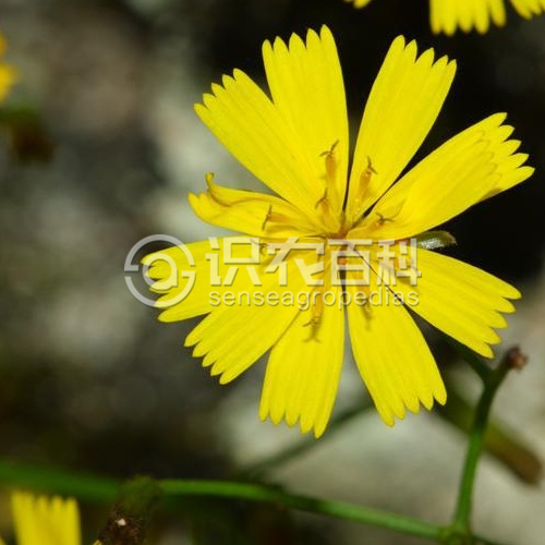 多年生草本,高8-50厘米,有短縮的生多數(shù)須根的根狀莖。莖單生或簇生,基部直徑1-3毫米,上部傘房或圓錐狀花序分枝,全部莖枝無毛。基生葉橢圓形、長橢圓形、倒披針形或狹線形,長5-18厘米,寬0.3-3厘米,邊緣有凹齒,齒頂有小尖頭,極少全緣或羽狀深裂,側裂片1-4對,半圓形或偏卵形,頂端圓形或鈍,有小尖頭,邊緣有稀疏的小緣毛,葉柄長1-8厘米,有狹翼,翼緣常有稀疏緣毛或小鋸葉;莖生葉少數(shù),不分裂,與基生葉同形,邊緣有凹齒或尖齒,頂端尾狀漸尖,基部無柄或有極短的葉柄;全部葉兩面無毛。頭狀花序小,多數(shù),在莖枝頂端排成傘房花序或圓錐狀花序,花序梗纖細??偘鷪A柱狀,長5-6毫米,總苞片2層,外層小,卵狀披針形,長1-1.5毫米,寬不足0.5毫米,頂端急尖,內(nèi)層長,線狀披針形,長5-6毫米,寬不足1毫米,頂端急尖,下部沿中脈海綿質(zhì)增厚。舌狀小花10-11枚,黃色。瘦果褐色,長圓錐狀,長3毫米,寬0. 3毫米,有10條高起的鈍肋,上部沿肋有微刺毛,上部漸狹成長1.8毫米的細喙,喙細絲狀。冠毛褐色或麥稈黃色,長3毫米,微粗糙?;ü?-8月