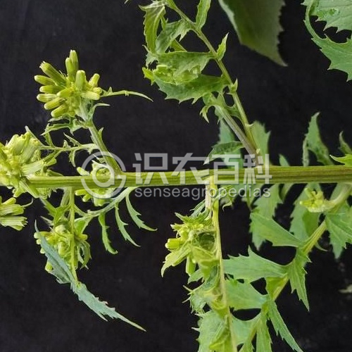 莖直立,高50-100厘米,不分枝或上部多分枝,具縱條紋,近無毛。葉具長柄,長圓形至橢圓形,頂端尖或漸尖,基部斜楔形,邊緣有不規則的重鋸齒或羽狀深裂;裂片6-8對,披針形,頂端漸尖,具鋸齒至不規則裂片,或稀淺裂,葉脈羽狀,兩面無毛;葉柄具狹下延的翅;上部葉與中部葉相似,但漸小,頭狀花序多數,直立或下垂,在莖端和上部葉腋排列成較密集的傘房狀圓錐花序,長約10毫米,寬3毫米,具線形的小苞片。總苞圓柱狀鐘形;總苞片1層,12-14