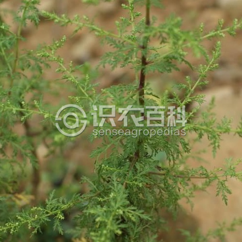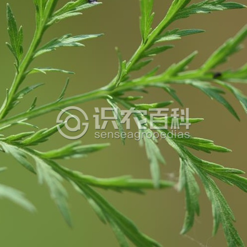 一年生草本;植株有香氣。主根單一,垂直,側根少。莖單生,高30-150厘米,上部多分枝,幼時綠色,有縱紋,下部稍木質化,纖細,無毛。葉兩面青綠色或淡綠色,無毛;基生葉與莖下部葉三回櫛齒狀羽狀分裂,有長葉柄,花期葉凋謝;中部葉長圓形、長圓狀卵形或橢圓形,長5-15厘米,寬2-5.5厘米,二回櫛齒狀羽狀分裂,第一回全裂,每側有裂片4-6枚,裂片長圓形,基部楔形,每裂片具多枚長三角形的櫛齒或為細小、略呈線狀披針形的小裂片,先端銳尖,兩側常有1-3枚小裂齒或無裂齒,中軸與裂片羽軸常有小鋸齒,葉柄長0.5-1厘米,基部有小形半抱莖的假托葉;上部葉與苞片葉一(至二)回櫛齒狀羽狀分裂,無柄。頭狀花序半球形或近半球形,直徑3.5-4毫米,具短梗,下垂,基部有線形的小苞葉,在分枝上排成穗狀花序式的總狀花序,并在莖上組成中等開展的圓錐花序;總苞片3-4層,外層總苞片狹小,長卵形或卵狀披針形,背面綠色,無毛,有細小白點,邊緣寬膜質,中層總苞片稍大,寬卵形或長卵形,邊寬膜質,內層總苞片半膜質或膜質,頂端圓;花序托球形;花淡黃色;雌花10-20朵,花冠狹管狀,檐部具2裂齒,花柱伸出花冠管外,先端2叉,叉端尖;兩性花30-40朵,孕育或中間若干朵不孕育,花冠管狀,花藥線形,上端附屬物尖,長三角形,基部圓鈍,花柱與花冠等長或略長于花冠,頂端2叉,叉端截形,有睫毛。瘦果長圓形至橢圓形。花果期6-9月。