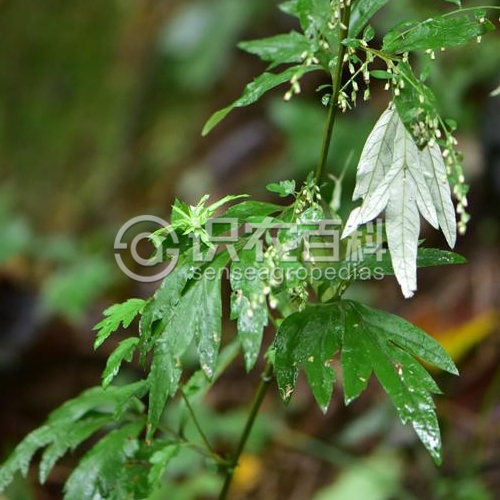 多年生草本。主根稍粗,側根多;根狀莖直立或斜上長,直徑3-7毫米,偶有營養枝。莖少數,成叢或單生,高60-150厘米,紫褐色或褐色,縱棱明顯,中上部以上分枝,枝長5-10厘米,斜向莖端;莖、枝初時被蛛絲狀薄毛,后莖下部毛漸脫落無毛葉厚紙質或紙 質,葉面深綠色,無毛,背面密被灰白色蛛絲狀絨毛;下部葉卵形或長卵形,一至二回羽狀 深裂,每側有裂片2枚,裂片長圓形或長圓狀橢圓形,再次羽狀淺裂,具長柄,花期葉萎謝; 中部葉卵形或卵狀橢圓形,長6-12厘米,寬4-8厘米,羽狀深裂或半裂,偶有全裂,每側有裂片2(-3)枚,裂片橢圓狀披針形或橢圓形,疏離或緊密,中央裂片通常較側裂片大,而側裂片中基部裂片通常較側邊的中部裂片大,先端鈍或尖,不再分裂或每側具1-2枚疏裂齒,葉柄長1-2(-3)厘米,基部有小型的假托葉;上部葉小,羽狀深裂或半裂,每側有裂片1-2枚,裂片橢圓狀披針形或披針形,具短柄;苞片葉3深裂或不分裂,裂片或不分裂的苞片葉為橢圓形或披針形,近無柄。頭狀了翻字多數,長圓形或長卵形,直徑1.5-2.5毫米,無梗或具極短的梗,密集,下傾,基部有細小的小苞葉,在分枝上排成穗狀或穗狀花序式的總狀花序,而在莖上組成開展或中等開展的圓錐花序;總苞片3-4層,覆瓦狀排列,外層總苞片較小,卵形或狹卵形,背面綠色微被蛛絲狀毛,邊狹膜質,中層總苞片長圓形或橢圓形,背面微被蛛絲狀毛,有綠色中肋,邊緣寬膜質,內層總苞片長圓狀倒卵形,半膜質,邊緣撕裂狀;花序托小,凸起;雌花5一7朵,花冠狹管狀,檐部具2裂齒,花柱伸出花冠外,先端2叉,叉端尖;兩性花4-9朵,花冠管狀,黃色或檐部紫紅色,外面有疏腺點,花藥線形,頂端附屬物尖,長三角形,基部有小尖頭,花柱與花冠近等長,先端2叉,叉端截形,具睫毛。瘦果橢圓形或倒卵狀橢圓形?;ü?-11月