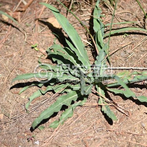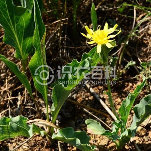 多年生草本,高10-42厘米。根垂直直伸,黑褐色 。莖多數,簇生,不分枝,直立,光滑無毛,莖基被稠密的棕褐色纖維狀撕裂的鞘狀殘遺物。基生葉線形、狹線形、線狀披針形、線狀長橢圓形、線狀披針形或長橢圓形,長3-35厘米,寬0.2-2.5厘米,頂端漸尖或鈍而有小尖頭或急尖,向下部漸狹成具翼的長柄,柄基鞘狀擴大或向基部直接形成擴大的葉鞘,3-7出脈,側脈不明顯,邊緣平或稍見皺波狀,兩面無毛或僅沿基部邊緣有蛛絲狀柔毛;莖生葉少數,2-3枚,鱗片狀,披針形或鉆狀披針形,基部心形,半抱莖。頭狀花序單生莖端。總苞圓柱狀,直徑1-2厘米。總苞片約5層,外層三角形或卵狀三角形,長6-8毫米,寬約6.5毫米,中層偏斜披針形或長橢圓形,長1.6-2.1厘米,寬5-7毫米,內層線狀長橢圓形,長2-2.5厘米,寬3-4毫米;全部總苞片外面光滑無毛,頂端急尖、鈍或圓形。舌狀小花黃色。瘦果圓柱狀,長1.3厘米,有多數縱肋,無毛,無脊瘤。冠毛淡黃色,長1.7厘米,與瘦果連接處有蛛絲狀毛環,大部為羽毛狀,羽枝蛛絲毛狀,上部為細鋸齒狀。花果期4-7月。