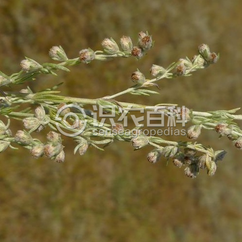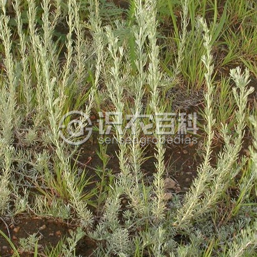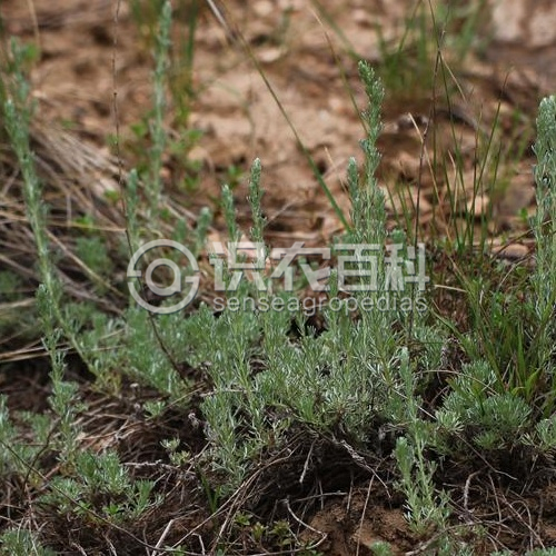 小灌木。主根粗而長,木質,側根多;根狀莖粗壯,直徑1-3厘米,具多枚營養枝。莖多枚,高50-100厘米,莖皮老時常呈薄片狀剝落,分枝多,枝長10-35厘米,老枝暗灰白色或暗灰褐色,當年生枝紫紅色或黃褐色,莖、枝與營養枝常組成大的密叢。葉黃綠色,初時兩面微有短柔毛,后無毛,多少半肉質,干后堅硬;莖下部葉寬卵形或卵形,一至二回羽狀全裂,每側有裂片3-4枚,基部裂片最長,有時再2-3全裂,小裂片狹線形,葉柄短,基部稍寬大;中部葉卵形或寬卵形,長3-5(-7)厘米,寬2-4厘米,一回羽狀全裂,每側裂片2-3枚,裂片狹線形,長1.5-3厘米,寬0.5-1毫米,通常向中軸方向彎曲或不弧曲;上部葉5或3全裂,裂片狹線形,無柄;苞片葉3全裂或不分裂,裂片或不分裂之苞片葉狹線形。 [2] 頭狀花序多數,卵形,直徑1.5-2.5毫米,有短梗及小苞葉,斜生或下垂,在分枝上排成總狀或復總狀花序,并在莖上組成開展的圓錐花序;總苞片3-4層,外、中層總苞片卵形或長卵形,背面黃綠色,無毛,邊緣膜質,內層總苞片長卵形或橢圓形,半膜質;雌花10-14朵,花冠狹圓錐狀,檐部具2裂齒,花柱長,伸出花冠外,先端2叉;兩性花5-7朵,不孕育,花冠管狀,花藥線形,頂端附屬物尖,長三角形,基部圓鈍,花柱短,先端圓,棒狀,2裂,不叉開,退化子房不明顯。瘦果倒卵形,果壁上具細縱紋并有膠質物。花果期7-10月。