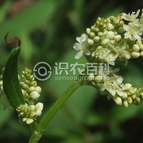 多年生草本。莖直立,高70-120厘米,無(wú)毛,自基部分枝,分枝呈叉狀,開(kāi)展,植株外型呈球形。葉披針形或長(zhǎng)圓形,長(zhǎng)5-12厘米,寬0.5-2厘米,頂端急尖,基部楔形或狹楔形,邊緣通常具短緣毛,兩面無(wú)毛或被疏柔毛;葉柄長(zhǎng)約0.5厘米;托葉鞘膜質(zhì),偏斜,長(zhǎng)1-2厘米,疏生柔毛或無(wú)毛,開(kāi)裂,脫落。花序圓錐狀,分枝開(kāi)展;苞片卵形,邊緣膜質(zhì),背部具脈,每苞片內(nèi)具2-3花;花梗長(zhǎng)2-2.5毫米,與苞片近等長(zhǎng),頂部具關(guān)節(jié);花被5深裂,白色,花被片橢圓形,長(zhǎng)2.5-3毫米,大小不相等;雄蕊7-8, 比花被短;花柱3,極短,柱頭頭狀。瘦果寬橢圓形,具3銳棱,黃褐色,有光澤,長(zhǎng)5-6毫米,超出宿存花被約1倍。花期7-8月,果期8-9月。