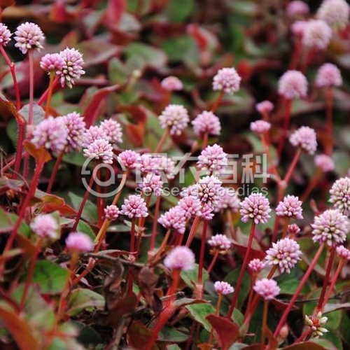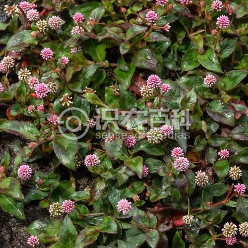 多年生草本。莖匍匐,叢生,基部木質化,節部生根,節間比葉片短,多分枝,疏生腺毛或近無毛,一年生枝近直立,具縱棱,疏生腺毛。葉卵形或橢圓形,長1.5-3厘米,寬1-2.5厘米,頂端尖,基部楔形,全緣,邊緣具腺毛,兩面疏生腺毛,上面有時具黑褐色新月形斑點;葉柄長2-3毫米,基部有時具葉耳;托葉鞘筒狀,膜質,長5-8毫米,松散,具腺毛,頂端截形,有緣毛。花序頭狀,直徑6-10毫米,單生或成對,頂生;花序梗具腺毛;苞片長卵形,膜質;花梗極短;花被5深裂,淡紅色,花被片橢圓形,長2-3毫米;雄蕊8, 比花被短;花柱3, 中下部合生,與花被近等長;柱頭頭狀。瘦果長卵形,具3棱,長1.5-2毫米,黑褐色,密生小點,微有光澤,包于宿存花被內。花期6-9月,果期8-10月。