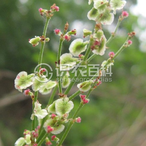 (10)毫米,頂端急尖,基部兩側(cè)的裂片伸展或向上彎曲,全緣,兩面無毛,葉柄長2-5厘米;莖上部葉較小葉柄短或近無柄;托葉鞘膜質(zhì),白色,常破裂。花序圓錐狀,頂生,疏松,花單性,雌雄異株;花梗長2-2.5毫米,無關(guān)節(jié);花簇具2-7花;雄花內(nèi)花被片橢圓形,長約1.5毫米,外花被片披針形,較小,雄蕊6;雌花內(nèi)花被片果時不增大或稍增大,卵形,長1.5-1.8毫米,頂端急尖,基部圓形,具網(wǎng)脈,無小瘤,外花被片披針形,長約1毫米,果時不反折。瘦果寬卵形,具3棱,長1-1.5毫米,黃褐色,有光澤。花期6-7月,果期7-8月。