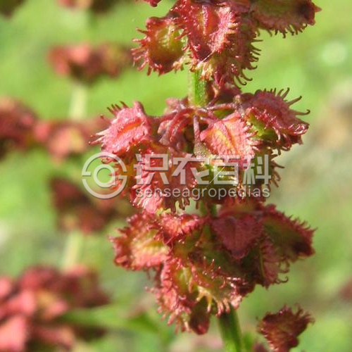 多年生草本。根粗壯。莖直立,高50-100厘米,具溝槽,無毛,上部分枝。基生葉長圓狀卵形,長10-15厘米,寬4-8厘米,頂端急尖,基部心形,邊緣全緣,兩面無毛或下面沿葉脈具小突起;莖生葉卵狀披針形;葉柄長3-10厘米;托葉鞘膜質,易破裂。花序圓錐狀;花兩性;花梗中下部具關節;花被片6, 成2輪,外輪花被片橢圓形,長約1.5毫米,內花被片果時增大,寬卵形,長5-6厘米,頂端急尖,基部截形,邊緣每側具7-8刺狀齒,齒長2-3毫米,頂端成鉤狀,一部或全部具小瘤。瘦果卵形,具3銳棱,頂端急尖,長約3毫米,褐色,有光澤。花期4-5月,果期6-7月。