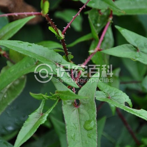 一年生草本。莖基部外傾,上部近直立,有分枝,無(wú)毛,四棱形,沿棱具倒生皮刺。葉寬披針形或長(zhǎng)圓形,長(zhǎng)2.5-8厘米,寬1-2.5厘米,頂端急尖,基部箭形,上面綠色,下面淡綠色,兩面無(wú)毛,下面沿中脈具倒生短皮刺,邊緣全緣,無(wú)緣毛;葉柄長(zhǎng)1-2厘米,具倒生皮刺;托葉鞘膜質(zhì),偏斜,無(wú)緣毛,長(zhǎng)0.5-1.3厘米。花序頭狀,通常成對(duì),頂生或腋生,花序梗細(xì)長(zhǎng),疏生短皮刺;苞片橢圓形,頂端急尖,背部綠色,邊緣膜質(zhì),每苞內(nèi)具2-3花;花梗短,長(zhǎng)1-1.5毫米,比苞片短;花被5深裂,白色或淡紫紅色,花被片長(zhǎng)圓形,長(zhǎng)約3毫米;雄蕊8, 比花被短;花柱3, 中下部合生。瘦果寬卵形,具3棱,黑色,無(wú)光澤,長(zhǎng)約2.5毫米,包于宿存花被內(nèi)。花期6-9月,果期8-10月。