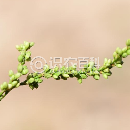 一年生草本。莖直立30-70厘米,通常自基分枝,節間上部具柔毛。葉披針形或寬披針形,長4-10厘米,寬1-2厘米,頂端漸尖,基部圓形或楔形,邊緣具長緣毛,兩面疏生糙硬毛,中脈上的毛較密;葉柄極短或近無柄;托葉鞘筒狀,膜質,長6-12毫米,具長糙硬毛,頂端截形,具長緣毛。總狀花序呈穗狀,細弱,頂生或腋生,長4-7厘米,通常數個再組成圓錐狀,花稀疏或密生,下部間斷,花序梗無毛,疏生分泌粘液的腺體;苞片漏斗狀,綠色,無毛,邊緣膜質,具緣毛,每苞內含花3-5, 花梗比苞片長;花被4-5深裂,淡綠色,花被片橢圓形,長1-1.5毫米;雄蕊7-8,比花被短;花柱3, 中下部合生。瘦果橢圓形,具3棱,黑褐色,平滑,有光澤。長約1.5毫米。包于宿存花被內。花期7-9月,果期8-10月。