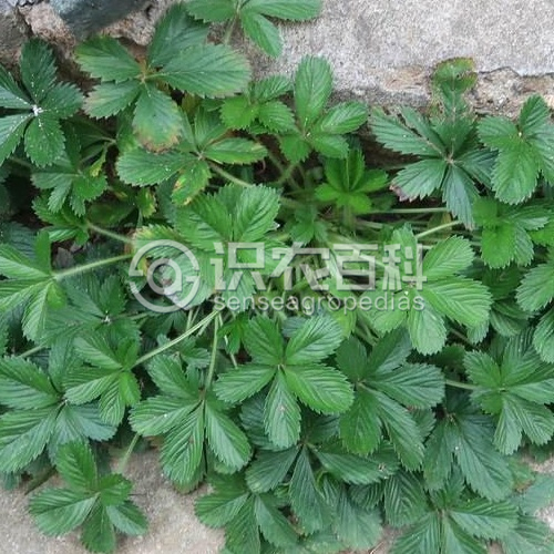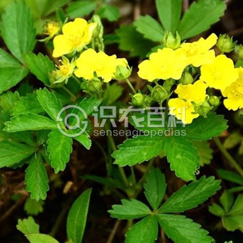 一年生、二年生或多年生宿根草本。多須根?;ㄇo上升或匍匐,常于節處生根并發育出新植株,長10-50厘米,被疏柔毛或開展長柔毛?;~為近于鳥足狀5小葉,連葉柄長3-20厘米,葉柄被疏柔毛或開展長柔毛;小葉幾無柄稀有短柄,小葉片倒卵形或長圓倒卵形,長0.5-4厘米,寬0.4-2厘米,頂端圓鈍,基部楔形,邊緣有多數急尖或圓鈍鋸齒,兩面綠色,被疏柔毛,有時上面脫落幾無毛,或下面沿脈密被伏生長柔毛,下部莖生葉有5小葉,上部莖生葉有3小葉,小葉與基生小葉相似,唯葉柄較短;基生葉托葉膜質,淡褐色,外面被疏柔毛或脫落幾無毛,莖生葉托葉草質,綠色,卵形至卵狀披針形,全緣,稀有1-2齒,頂端急尖或漸尖,外被稀疏長柔毛。聚傘花序密集枝頂如假傘形,花梗長1-1.5厘米,密被開展長柔毛,下有莖生葉如苞片狀;花直徑0.8-1厘米;萼片三角卵圓形,頂端急尖或漸尖,副萼片披針形或橢圓披針形,頂端急尖或漸尖,花時比萼片短,果時略長或近等長,外被稀疏長柔毛;花瓣黃色,倒卵形,頂端微凹,長于萼片;花柱近頂生,圓錐形,基部膨大,柱頭擴大。瘦果近圓形,一面稍平,直徑約0.5毫米,具皺紋?;ü?-9月。