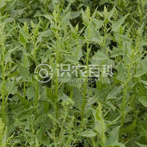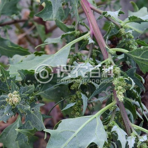一年生草本,高20-100厘米,全株無粉,幼葉及花序軸有時稍有棉毛。莖直立,較粗壯,有條棱及色條,分枝或不分枝。葉片葉菱形至菱狀卵形,莖下部葉的葉片長達(dá)15厘米,近基部的1對鋸齒較大呈裂片狀。兩面近同色,邊緣具不整齊鋸齒;葉柄長2-4厘米。花序以頂生穗狀圓錐花序?yàn)橹鳎换ù赜啥鄶?shù)花密,集而成;花被裂片3-5,狹倒卵形,花被基部狹細(xì)呈柄狀;花藥矩圓形,花絲稍短于花被。胞果雙凸鏡形,果皮黑褐色。種子橫生、斜生及直立,直徑0.5-0.7毫米,邊緣銳,表面點(diǎn)紋清晰。紅褐色至黑色,有光澤,邊緣鈍。花期8-9月,果期10月。