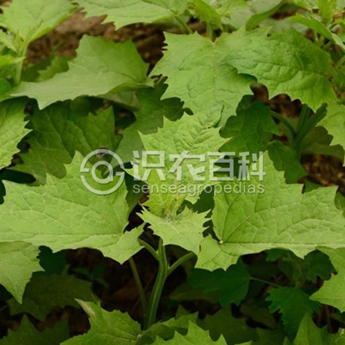 一年生草本,高40-120厘米。莖直立,粗壯,具淡黃色或紫色條棱,上部有疏分枝,無粉或枝上稍有粉。葉片寬卵形至卵狀三角形,長6-15厘米,寬5-13厘米,兩面均呈亮綠色,無粉或稍有粉,先端急尖或漸尖,基部圓形、截形或略呈心形,邊緣掌狀淺裂;裂片2-3對,不等大,輪廓略呈五角形,先端通常銳;上部葉較小,葉片多呈三角狀戟形,邊緣具較少數的裂片狀鋸齒,有時幾全緣;葉柄長2-7厘米。花兩性兼有雌性,通常數個團集,在分枝上排列成開散的圓錐狀花序;花被裂片5, 狹卵形,先端鈍,背面具縱脊并稍有粉,邊緣膜質;雄蕊5。胞果雙凸鏡狀;果皮膜質,有白色斑點,與種子貼生。種子橫生,與胞果同形,直徑通常2-3毫米,黑色,無光澤,表面具明顯的圓形深佳或呈凹凸不平;胚環形。花果期7-9月。