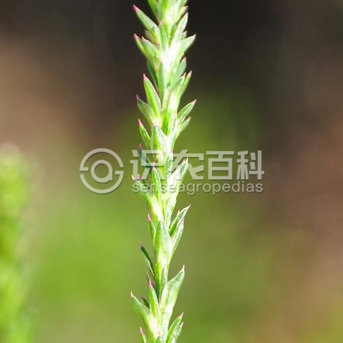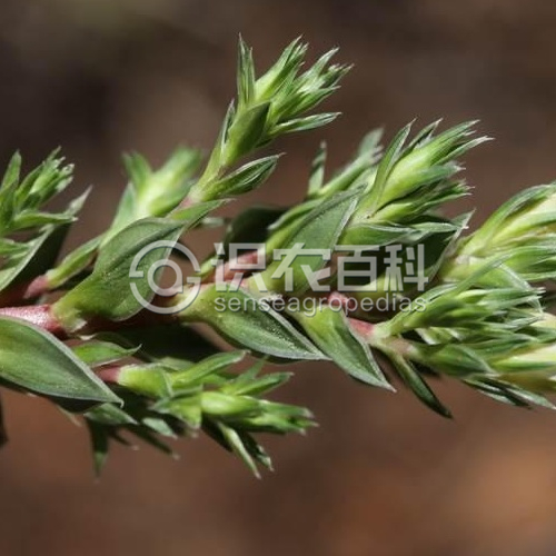 一年生草本,高20-100cm;莖自基部分枝,枝互生,伸展,莖、枝綠色,有白色或紫紅色條紋,生短硬毛或近于無毛。葉片絲狀圓柱形,伸展或微彎曲,長2-5cm,寬0.5-1.5mm,生短硬毛,頂端有刺狀尖,基部邊緣膜質(zhì),稍擴展而下延。花序穗狀,生枝條上部;苞片卵形,頂部延伸,有刺狀尖,邊緣膜質(zhì),背部有白色隆脊;小苞片狹披針形,頂端有刺狀尖,苞片及小苞片與花序軸緊貼;花被片卵狀披針形,膜質(zhì),頂端尖,果時變硬,自背面中上部生雞冠狀突起;花被片在突起以上部分,近革質(zhì),頂端為膜質(zhì),向中央折曲成平面,緊貼果實,有時在中央聚集成小圓錐體;花藥長1-1.5mm;柱頭絲狀,長為花柱的1.5-2倍。種子橫生或斜生。花期7-9月,果期9-10月。