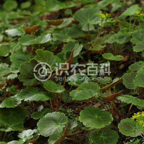 虎耳草(學(xué)名:Saxifraga stolonifera Curtis),雙子葉植物綱,薔薇目,虎耳草科,虎耳草屬多年生草本植物。
