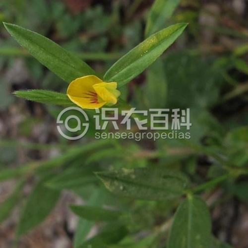 多年生、纖弱多分枝草本,高20-50厘米。無毛,有時有粗厚的根狀莖。托葉披針形,長1毫米,無毛,有明顯的脈紋,基部具長耳。小葉2枚,卵狀長圓形、倒卵形至披針形,長0.8-1.5厘米,有時長達2.5厘米,先端急尖而具短尖頭,基部偏斜,兩面無毛,背面有褐色或黑色腺點。總狀花序腋生,長2-6厘米,花2-6(-10)朵疏生于花序軸上;苞片2,卵形,長6-7(-10)毫米,盾狀著生,具緣毛,有明顯的縱脈紋5-6條;花萼長3毫米,花冠黃色,旗瓣有縱脈,翼瓣和龍骨瓣均較小,具瓣柄。莢果通常長于苞片,少有短于苞片,有莢節2-6,莢節近圓形,長與寬約2(-4)毫米,表面具明顯網脈及針刺。花期4-7月,果期7-9月。