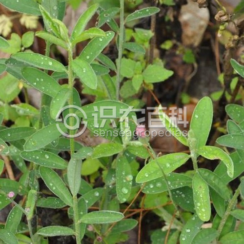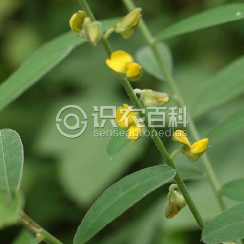 多年生直立草本,基部常木質,體高30-60 (-80) 厘米;植株或上部分枝,通常細弱,被緊貼的短柔毛。 托葉細小,剛毛狀,早落;單葉,葉片倒卵形、長圓狀橢圓形或倒披針形,長1-2.5厘米,寬0.5-1.2厘米,先端鈍或圓,具細小的短尖頭,基部楔形,上面綠色,近無毛,下面暗灰色,略被短柔毛;葉柄近無。總狀花序頂生或腋生,有花20-30朵,花序長達20厘米,苞片絲狀,長約1毫米,小苞片與苞片同形,生萼筒基部;花梗長3-5毫米;花萼二唇形,長6-8毫米,深裂,上面二萼齒寬大,先端稍鈍圓,下面三萼齒披針形,先端漸尖;花冠淡黃色,旗瓣橢圓形,長6-8毫米,先端具束狀柔毛,基部胼胝體可見,冀瓣長圓形,約與旗瓣等長,龍骨瓣彎曲,幾達90度,中部以上變狹形成長喙;子房無柄。 莢果短圓柱形,長約10毫米,無毛,稍伸出花萼之外;種子6-12顆。花果期5月至12月間。