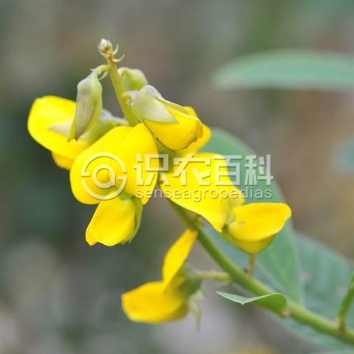 高達(dá)1.5米;莖枝粗狀,圓柱形,被銹色柔毛。 葉托葉細(xì)小,線形,貼伏于葉柄兩旁;單葉,葉片質(zhì)薄,倒披針形或長橢圓形,先端鈍圓,具細(xì)小短尖,基部楔形,長5-15厘米,寬2-4厘米,上面無毛,下面被銹色短柔毛;葉柄長2-3毫米。 花總狀花序項(xiàng)生或腋生,有花20-30朵;苞片線形,長2-3毫米,小苞片與苞片的形狀相似,通常稍短;花萼二唇形,長10-15毫米,萼齒披針狀三角形,約與萼筒等長,被短柔毛;花冠黃色,旗瓣圓形或橢圓形,長15-20毫米,基部具胼胝體二枚,先端微凹或圓,翼瓣長圓形,長15-18毫米,龍骨瓣彎曲,幾達(dá)90度,中部以上變狹形成長喙,伸出萼外;子房無毛。 果莢果長圓形,長4-6厘米,徑約1.5厘米,果頸長約5毫米;種子20-30顆。 花果期5-12月間。
